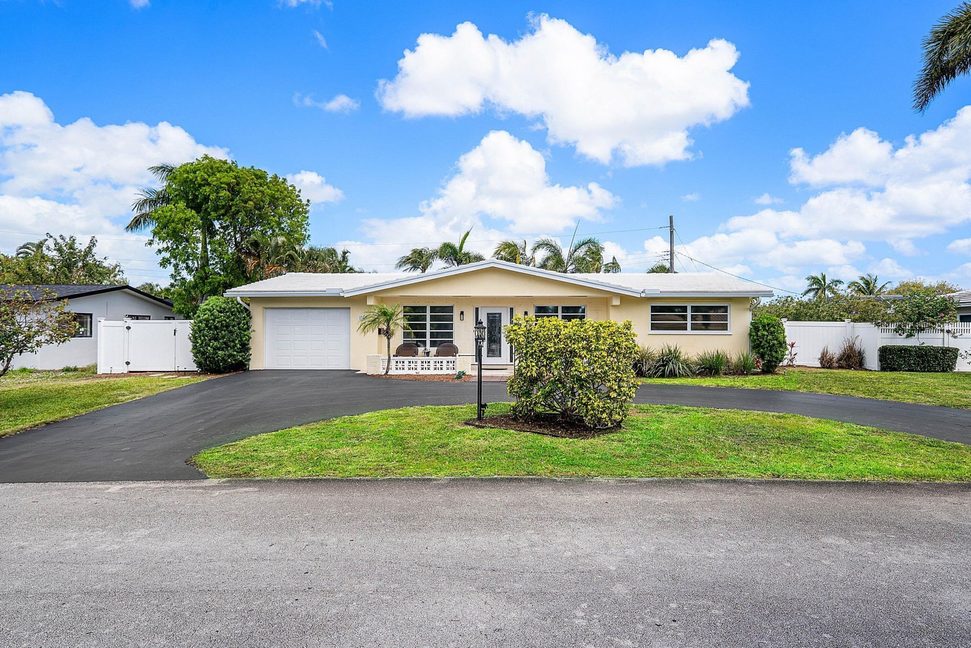 Nestled in the prestigious enclave of Lighthouse Point, this charming and impeccably maintained 2-bedroom, 2-bath home offers comfort, style, and an ideal location. An inviting open floor plan welcomes you inside, featuring elegant 24x24 porcelain tile flooring throughout, newer appliances, and a recently updated A/C for added peace of mind. A versatile den provides the option to easily convert into a third bedroom, offering added flexibility. Set on a spacious 9,000 sq. ft. lot, you can create your dream backyard, including space for a pool. The property is fully fenced with commercial-grade PVC and showcases beautiful landscaping, manicured lawns, and a sprinkler system on well water for easy maintenance. Located on one of the area's quietest streets, a truly peaceful setting.