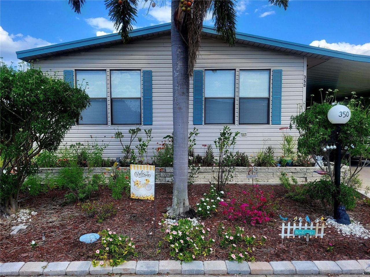 LOCATION! LOCATION! LOCATION! Welcome to this beautifully maintained 2-bedroom, 2-bath manufactured home in the desirable 55+ community of Horizon Village. Situated on a leased lot with 2026 rent of $835/month, the home offers inviting curb appeal with tropical landscaping. Buyer approval is required. Recent updates include a newly painted interior and exterior, new modern lighting and fans throughout, a new roof and carport (2023), new gutters (2023), and new tie-downs (2025). The oversized driveway and carport provide ample parking and convenience. Inside, the light-filled open floor plan features tile flooring throughout the main areas, new subflooring, and large windows. The kitchen offers white appliances, generous cabinetry with blue accents, a breakfast bar, and a convenient pass-through to the dining area. A dedicated laundry room with washer and dryer sits just off the kitchen. The master bedroom includes a walk-in closet and private bath with single sink vanity and a walk-in shower. The guest bedroom offers a spacious built-in closet and easy access to the full guest bath. Plumbing under sinks was updated in 2024, with new toilets installed in 2023. The Florida room is bright and airy, ideal for relaxing or entertaining. Additional highlights include an attached storage shed and a 2017 A/C system serviced annually. Horizon Village offers an active lifestyle with a 15,000 sq. ft. clubhouse, heated pool, jacuzzi, shuffleboard, bocce and horseshoe courts, billiards, and wide sidewalks for walking or biking. Clubs, hobby groups, weekly events, and social activities provide endless opportunities to stay engaged. Located just 3 miles from Downtown Fort Myers and the River District, with Gulf beaches and Southwest Florida International Airport about 30 minutes away, this home combines convenient access with a vibrant, active Florida lifestyle.**PLEASE ENJOY THE 3D INTERACTIVE VIRTUAL TOUR ASSOCIATED WITH THIS LISTING**